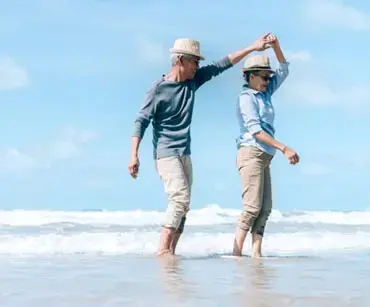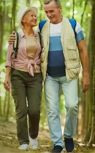 Senior couple smiling after improving balance and mobility with Neuro-Balance Therapy program